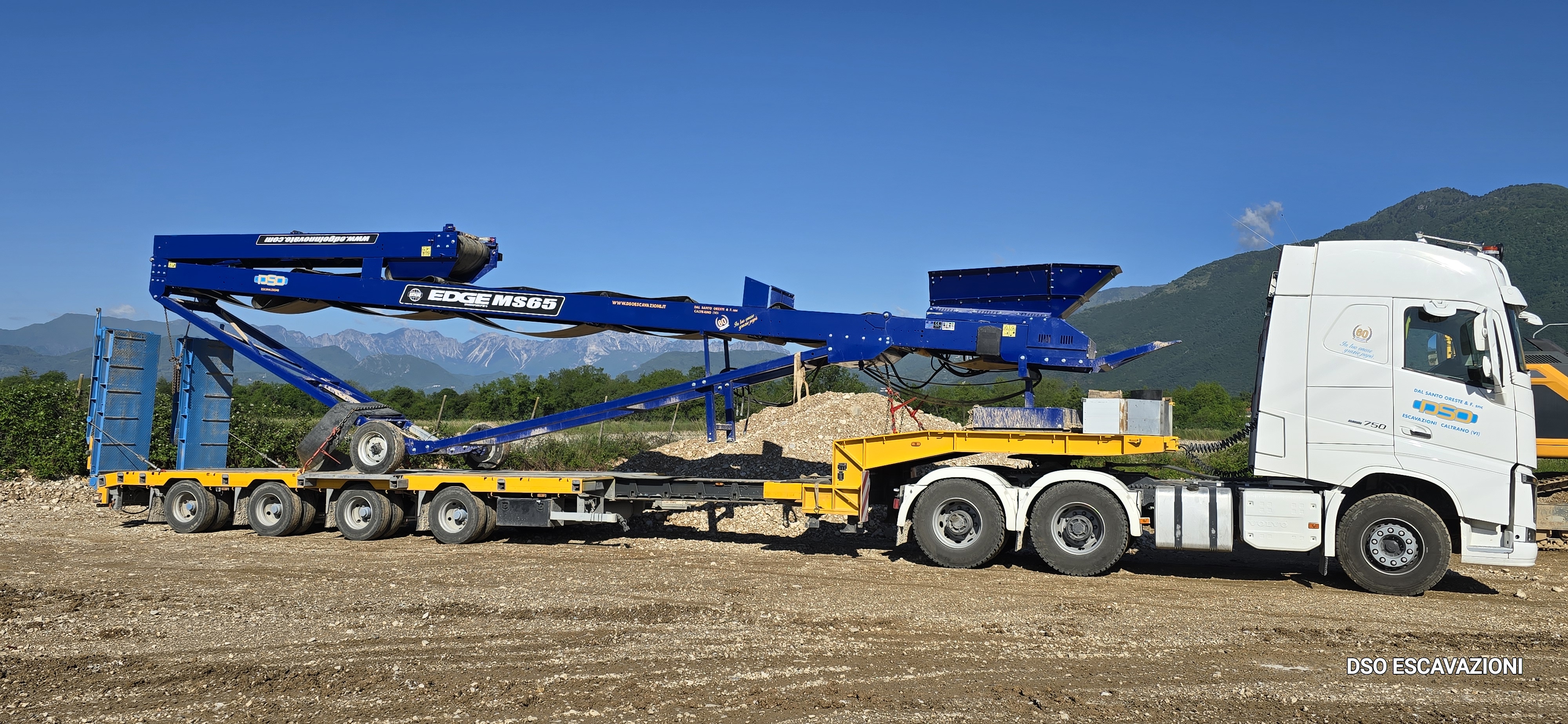 #E nuovo nastro di rilancio inerti EDGE MS 65 da 25mt autonomo con sistema di rotazione idraulico per accumulo inerti fino a 4000mc.