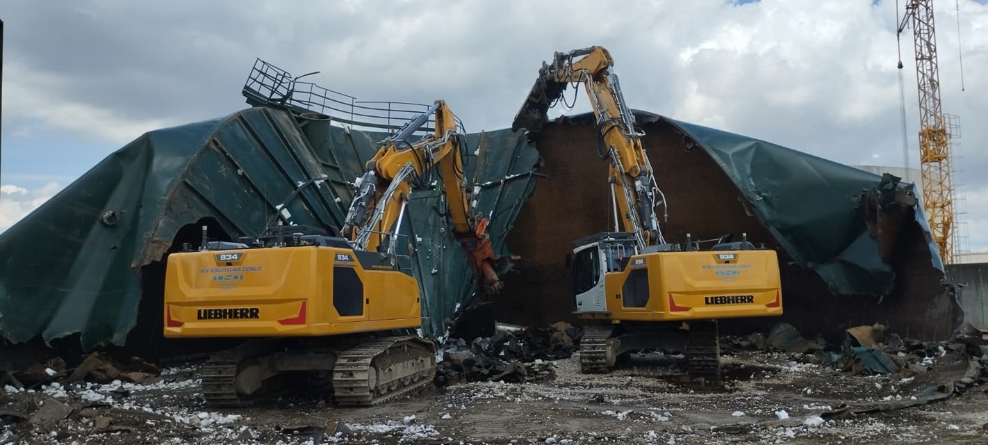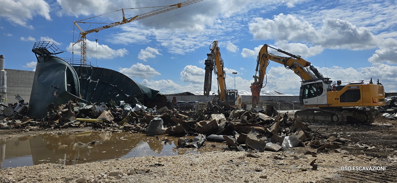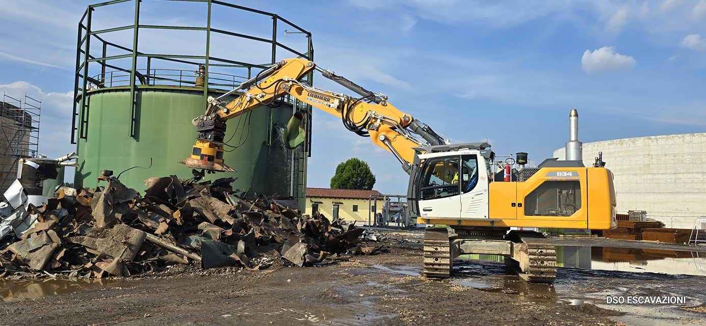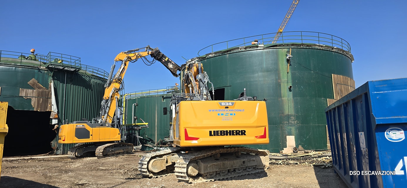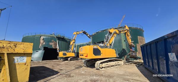 La DSO ESCAVAZIONI e stata impegnata con le proprie atrezzature per demolire 3 serbatoi in acciaio per il rinnovo di un impianto di biomasse a Ronco All'Adige VR. Demolizione completa di tutti gli impianti tubazioni e macchinari.